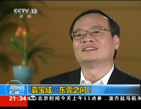 解说:今年2月,一系列关于东莞部分酒店的报道,让东莞这座城市成为全国关注的焦点。3月的全国两会,东莞市市长袁宝成也成为了记者们争相采访的对象。闪光灯下,面对记者们一个又一个问题,市长袁宝成一直面带笑容,而这样的笑容,也被记者们描绘成以“嘿嘿”做答,于是东莞市长就被一些媒体称为“嘿嘿市长”。尽管事后袁宝成回应说,自己当时并没有嘿嘿,而是被“嘿”的,但是在当时面对“涉黄问题怎么样了”?“东莞失业情况严重吗”?“东莞经济能不能达到保九的预期目标”等记者们关心的问题,袁宝成的确没有给出明确答案。