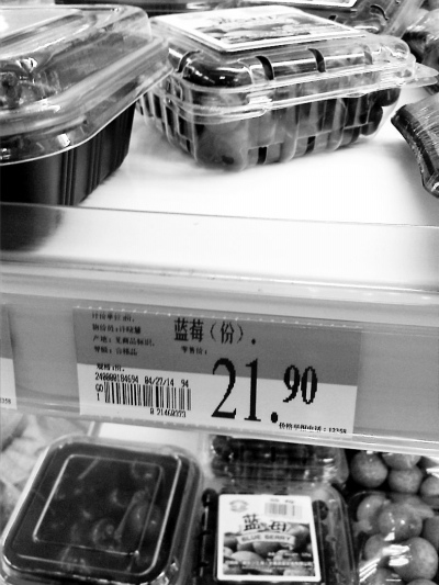 “货架标签上明明写着一盒蓝莓21.9元,付钱时却变成了27.8元。”