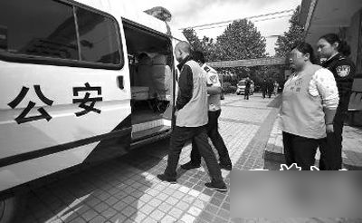 昨日,犯罪嫌疑人张某、李某(女)指认作案现场后,走向警车