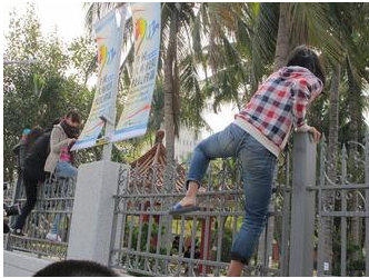 上百民警力组成人墙防堵抗议群众冲入场内,约5名学生翻墙进入学校,警方阻挡爆发数次冲突。抗议学生被数十名警力连拖带拉,拖到学校外,还有人一度昏厥,抗议人群在上午约11时散场。