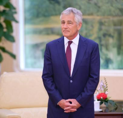 4月9日,美国国防部长哈格尔在北京人民大会堂。
