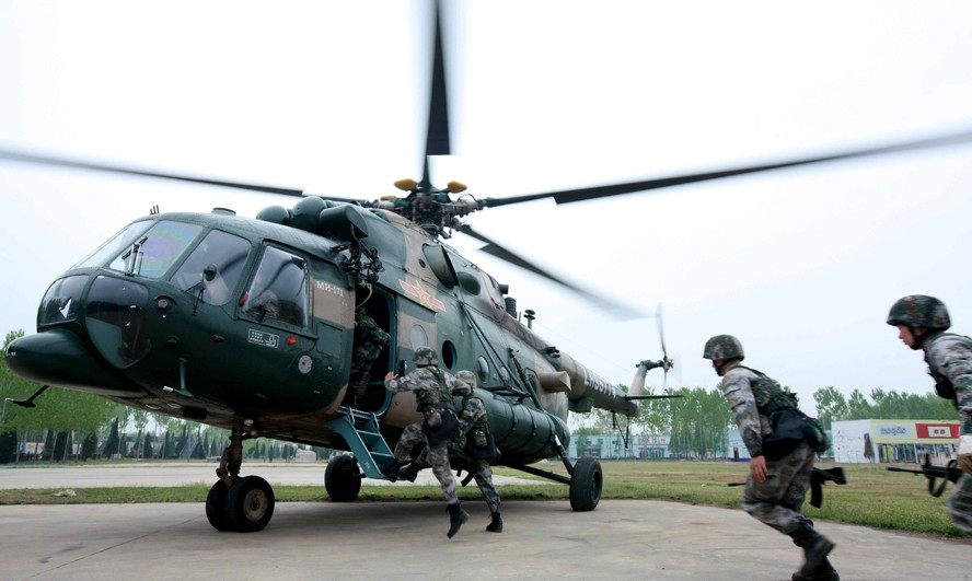4月12日,南京军区某机步旅官兵搭乘直升机进行敌后突袭训练。连日来,该旅按照实战化要求,联合某陆航部队组织敌后突袭、快速机降、兵力投送等课目训练,提升部队作战能力。