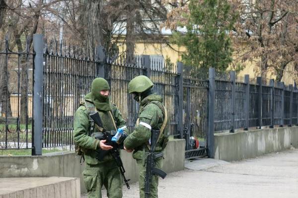 环球时报赴克里米亚特派记者报道:克里米亚首府辛菲罗波尔每处乌克兰军方的驻地外的大街上都有被称为“小绿人”的武装人员,他们看起来绝对是职业军人,但是无论如何交涉,他们虽然保持态度和缓,但就是不会回答问题。