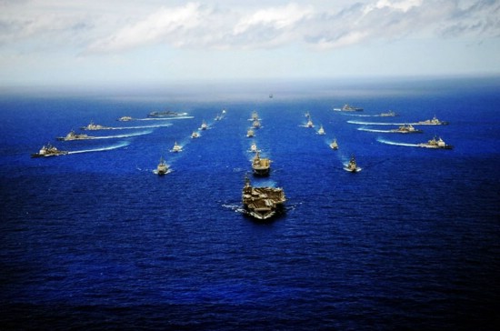 图为可以控制全球重要海峡的美国航母编队
