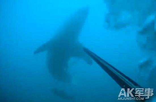 据英国《每日邮报》5月18日报道,美国佛罗里达州一名潜水员在约27.4米下的深水中潜水,惊遇3.7米长大白鲨。勇敢的潜水员没有退却,而是用手中的鱼枪将大白鲨击退,其头部的GoPro摄像机记录下这惊险的一幕。