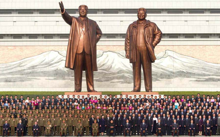 朝鲜最高领导人金正恩于10日与朝鲜最高人民会议第13届代议员们一起在平壤万寿台金日成、金正日铜像前合影。金永南、朴凤柱、崔龙海、李永吉、张正南等最高人民会议代议员参加了合影留念。各位代议员高呼“万岁!”庆祝第十三届最高人民会议第1次会议成功召开,并祝贺金正恩领导朝鲜走向富强的社会主义国家发展的转换期。