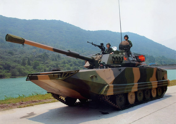 03P型水陆坦克配备的105毫米低后坐力坦克炮,采用身管全膛镀铬,火炮线膛式身管.可发射北约国家制式105毫米坦克炮弹.也可发射国产 105毫米坦克炮弹。配备穿甲弹、破甲弹和杀伤爆破弹等弹种,弹药基数为38发。在2 ooo米距离上可击穿460~500毫米厚度的均质钢装甲,能击毁敌军的主战坦克和1~1.5米厚的钢筋混凝土工事,能有效地压制、消灭4 ooo米以内暴露和隐蔽的敌岸防残存火力点和有生力量。新型光点式火控系统使车辆具备静对动射击和夜间精确射击能力。03P型水陆坦克在国内首次采用交流全电炮控系统,与传统的液压炮控系统相比,具有稳定精度高、可靠性好、体积小、重量轻的优点。