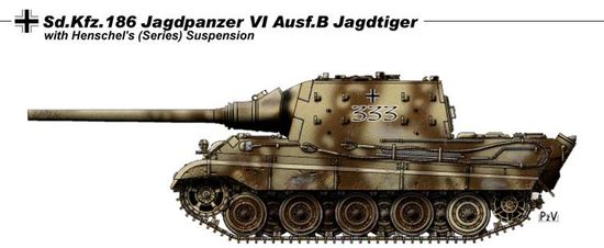 但谁会真正知道,“猎虎”坦克歼击车的真正优势在哪里?它安装有两种不同类型的运转齿轮,亨舍尔型(74型)以及波尔舍型11型,这个型号是从1944年2月至9月生产的,这两种行动装置不仅扭力轴的布置形式不同,负重轮尺寸也不一样,而且形状也不同,这给部队的维修保养和备件供应带来不便。波尔舍型的比亨舍尔型便宜一半价格,制造更节约时间。“猎虎”坦克歼击车是由圣瓦勒汀的工厂生产,它的测试则是在奥地利的道勒沙姆进行。希特勒自己的想法是把“猎虎”坦克歼击车改成火焰喷射坦克,不过他的愿望并没有实现。从1944年7月至1945年4月,一共只生产了85辆“猎虎”坦克歼击车,而原计划是生产150辆。