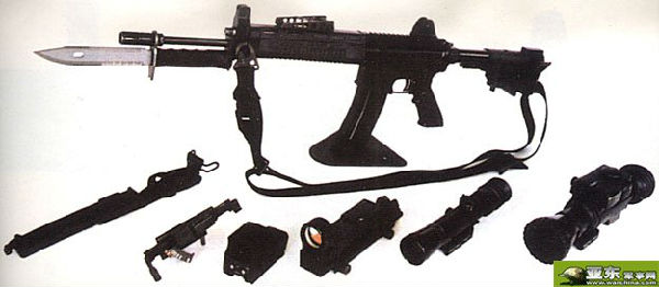 T91的护木外形仍保留着T86的设计特征,只是稍作改变,最明显的特征是在护木下方增加了防滑纹。在导气箍下面、紧邻刺刀卡笋的后方增加了一段较短的皮卡汀尼导轨,可装上战术灯、激光指示器之类的附件。但如果装上这些附件后,则无法上刺刀。还有一个细节的变化是准星的保护方式由T86的护圈改为护翼。伸缩枪托仍然是原来的M4式枪托的设计,只是外形设计与T86的稍有区别,但据说在T91的枪托上采用了全新的材料制造,贴腮瞄准时更舒适。
