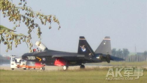 从飞机的雷达罩来看,倾斜明显,显现雷达天线是倾斜的,这表明飞机采用的应该是有源相控阵雷达,因为有源相控阵雷达的天线可以倾斜以避开对方雷达的探测,笔者注意雷达罩有明显的锯齿设计,这也是为了散射对方雷达电波而设计的,显现设计者比较重视雷达的前向隐身设计,歼-31的座舱并没有象歼-20那样采用整体舱盖,这显然是为了控制飞机的成本,显现设计者在注重飞机先进性的同时,也注意飞机的经济性能,飞机的进气道前掠,结合当年的模型可以确定歼-31可能用的也是DSI进气道,从图片上来看,歼-31采用了机腹弹舱设计,弹舱一直延伸到前起落架,显现它的尺寸不小,结合飞机正面的图片,笔者推测它大约可以配备4枚中距空空导弹,或者2枚空空导弹加2枚500公斤以下级别的飞腾系列卫星制导炸弹,从图上来看没有发现歼-31具备侧面弹舱,这样对于它的武器配备来说,可能就缺乏足够的灵活性。歼-31机身也采用了倾斜设计,这主要是折射侧面照射的雷达波,同理还有V形垂尾,从图片上来看应该不是歼-20采用的全动垂尾,显现歼-31采取的技术应该以先进性和成熟性并重,另外歼-31的后机身基本上没有采取隐身和红外措施,与机头连雷达罩都都采锯齿设计形成了鲜明的对照,这说明歼-31的隐身设计重点在于正面和侧面,对于后面基本上没有考虑。起落架方面,歼-31前起落架采用了双轮,笔者注意到它的前起落架支柱比较重壮,这样的设计显现歼-31比较重视在简陋的机场上起降,也引发了外界对于歼-31是否上舰的猜测。