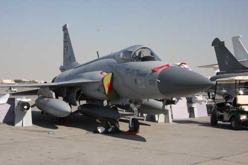 枭龙战机(巴基斯坦称之为JF-17雷电)可以说是中国与巴基斯坦军事合作的典范,是中国成都飞机公司与巴基斯坦航空综合企业(Pakistan Aeronautical Complex)合作研制,有超视距作战能力,有接近第四代战机的综合作战能力。2003年8月首飞。2007年开始交付巴基斯坦空军,是世界上第一种投入服役的使用DSI进气道的战斗机。