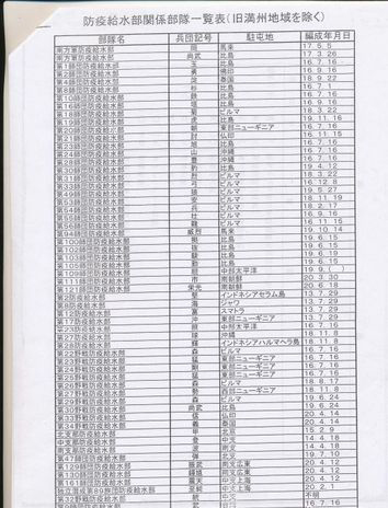 日军“防疫给水部队”名录 注:日期为昭和纪年