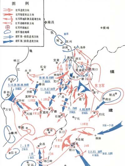 1934年1月,蒋介石在平息“闽变”后,将其入闽部队编为东路军,由蒋鼎文指挥,采取碉堡战术,稳扎稳打,缓慢东进。1934年3月,陈诚的北路军向南进展较为迅速,北路军前敌总指挥部进至南丰县城。