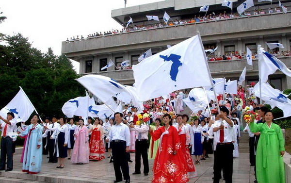 卢修熙跨过分界线之前,在朝鲜一侧受到朝鲜民众夹道欢送