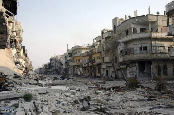 2012年7月30日照片显示,在叙利亚反地派武装与政府军的激烈交火中,叙利亚中部城市霍姆斯市已经成为废墟。