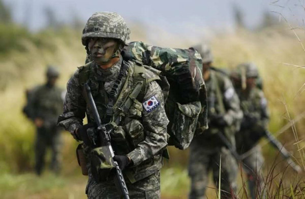 2012年7月31日,韩国海军陆战队精锐配合美国等多国部队参加2012年度环太平洋军演陆地科目演练。环太平洋军演是世界上最大的国际海上演习。该演习开始于1971年。今年的演习有来自22个国家的40多艘舰艇、200多架飞机超过25000人参加。