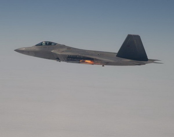美骄傲F22超音速飞行中发射响尾蛇导弹