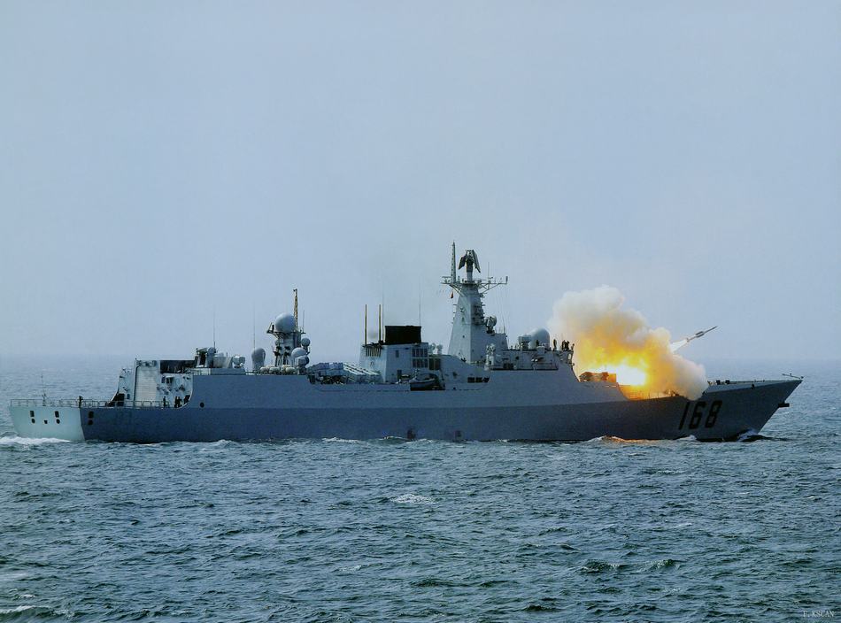 中国海军168号驱逐舰怒射导弹 威慑力惊人