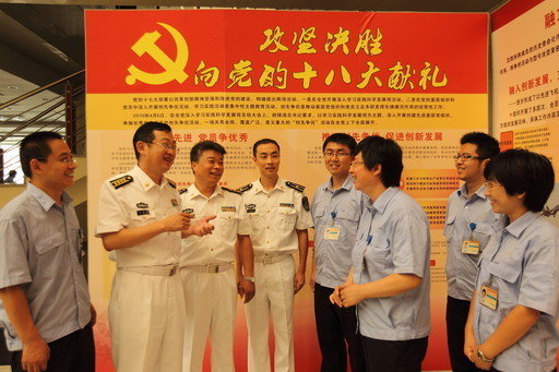 该军代室为海军装备建设作出了杰出贡献,连续7年被评为各级基层建设先进单位,连续两次荣膺海军先进舰连标兵榜和海装基层建设标兵单位。军代表在生产现场抽查部件。