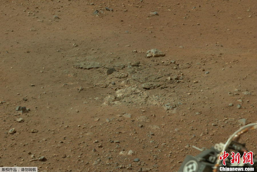 特写显示的这块岩石的位于“好奇”号的右方3米多远的地方。