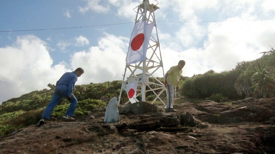 右翼分子将日本国旗包裹在早前矗立的灯塔上。