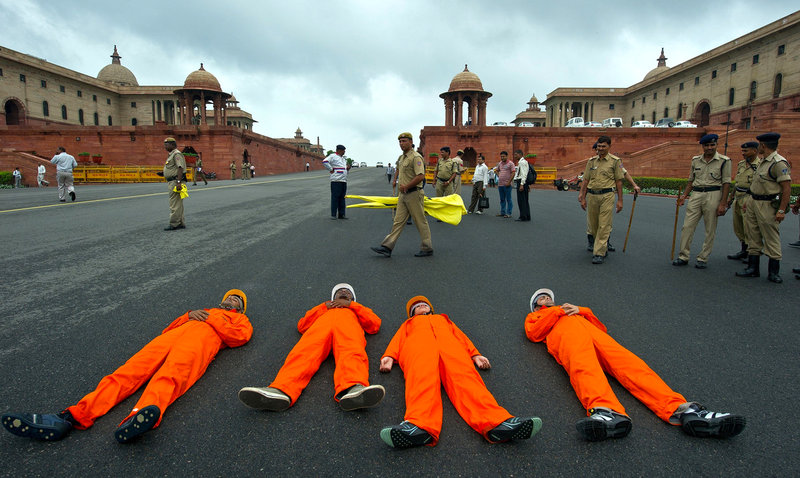 印度环保者横躺马路抗议