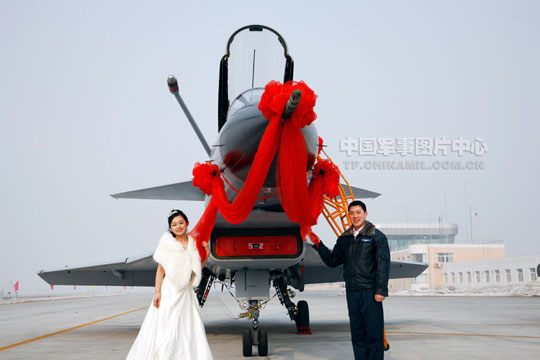 军人霸气婚礼:战鹰“歼十”当伴郎