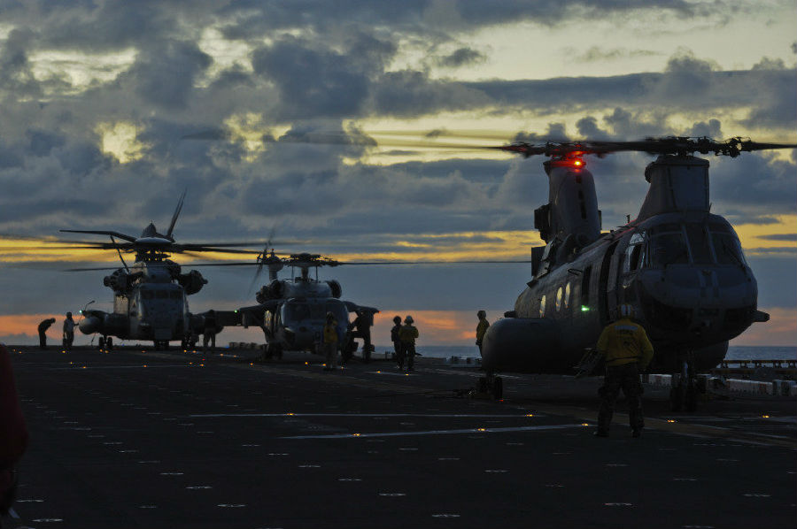 停放在好人查理德号两栖舰上的直升机