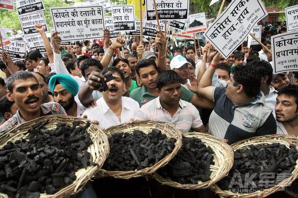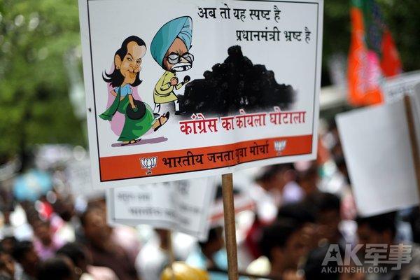 印度反对党焚烧总理玩偶