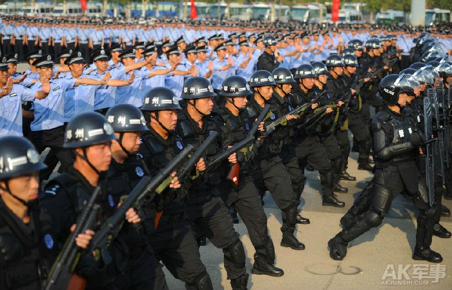 8月29日,在郑州市郑东新区如意湖畔,郑州公安局举行了多警种参加的应急演练和大会操。