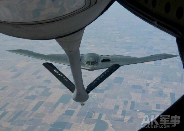 该实战演习目的是提高B-2A部队快速加挂核弹、快速出击执行全球核打击能力。图为B-2A轰炸机进行空中加油。