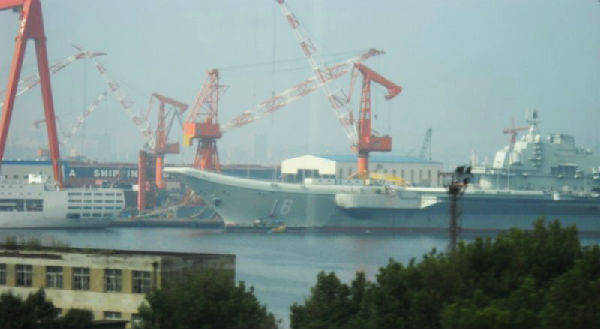 环球网报道:2012年9月2日,一些军事论坛的网友拍摄到在大连港停靠的我国海军首艘航母已经被刷上舷号16字样,该新舷号采用了中国海军正在试用的新型美式涂装,即所谓“黑边白字”。据悉,按照海军船舶服役规律,新型军舰涂装舷号,是即将加入海军行列的重要标志,中国人拥有自己的航母指日可待。(超大军事 骑蚂蚁赶火箭拍摄 环球网图片)