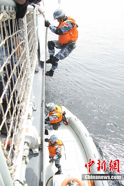 中国海军第十二批护航编队队员反海盗演练