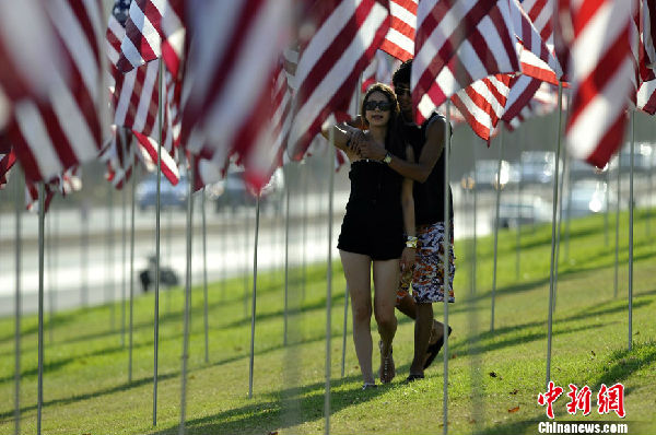 洛杉矶3000面美国国旗悼念“9·11”事件遇难者