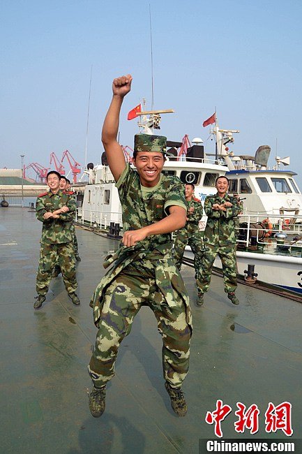 江苏海警官兵齐跳《江南style》“骑马舞”缓解压力