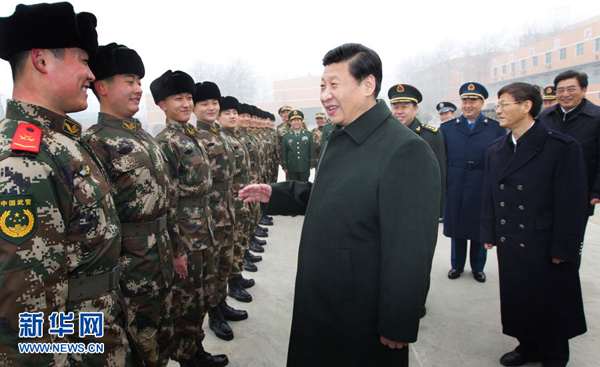 习近平在武警北京市总队十三支队向新兵详细了解新兵训练和生活情况