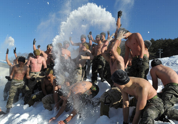 2月7日,韩国陆军部队与驻日美军一起进行冬季训练。