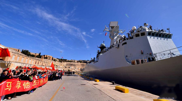 3月26日,中国海军黄山舰停靠在马耳他瓦莱塔港。当日,已结束护航任务的中国海军第十三批护航编队抵达马耳他瓦莱塔港,开始进行为期5天的友好访问。这是中国海军舰艇编队首次访问马耳他。