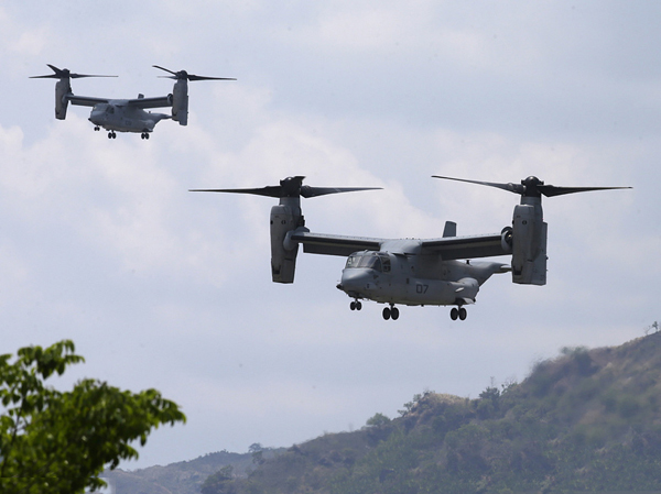 美菲“肩并肩”军演出动重武器装备进行演练