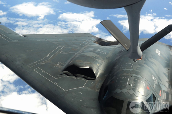 美空军发布距朝鲜最近B-2轰炸机空中加油照片