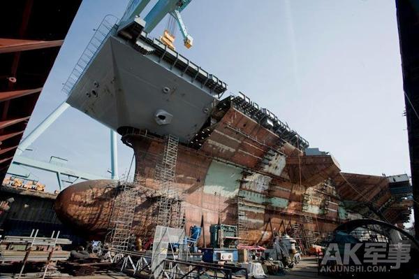 美军福特号航母舰艏对接 全舰完工度已达96%