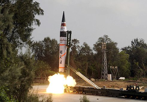 印度在位于惠勒斯岛的发射场第二次试射烈火5洲际导弹