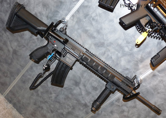 HK公司参与美国海军陆战队的IAR竞标的样枪是采用16.5英寸重型枪管的HK416,此外也配用比其他型号更长的护木。与其他IAR样枪不同的是,HK IAR没有其他专门的改进项目(例如像FN IAR那样采用两种待击方式,或像Colt IAR那样采用大型散热器),然而HK IAR却是所有竞争型号中重量最轻的,空枪重7.9磅,而且操作与M16相同,普通士兵不需要专门训练就能熟练掌握。在2009年12月2日的陆战队时报报道,HK IAR在此项目中中标了。另外美国海军陆战队正在试验一种由Armatac Industries公司生产的150发容量的CL-MAG弹鼓,有可能作为IAR配用的供弹具。