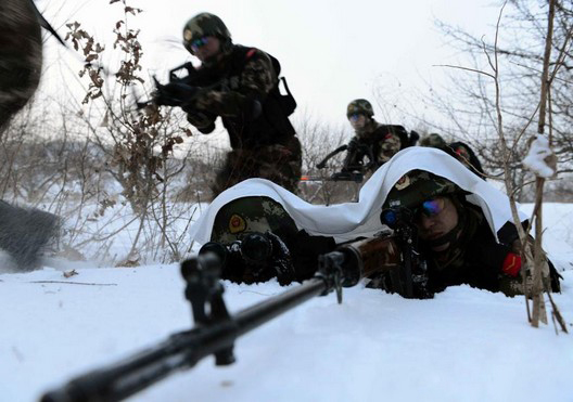 驻长白山武警装备超精良 配拐弯枪弓弩破门器