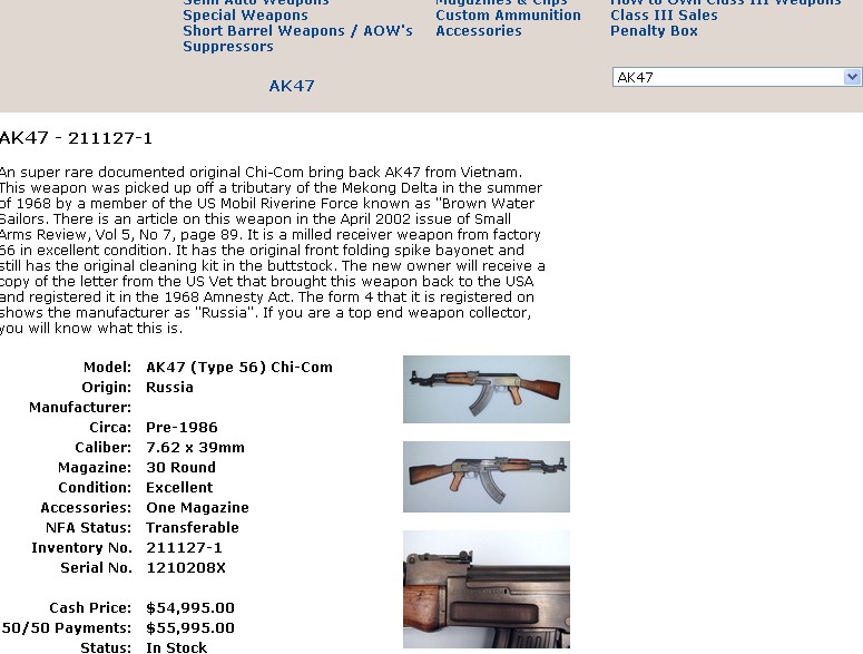 中国造老式56冲锋枪在美国售价5.6万美金?