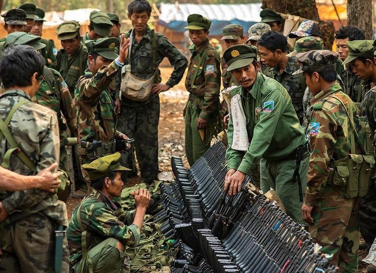 一名指挥官正在营地准备向士兵发放新的AK-47突击步枪。该反政府武装目前拥有1500名士兵,被要求在收获期间摧毁罂粟种植地。
