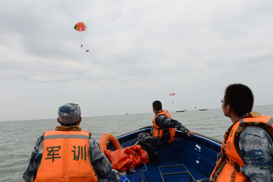 4月28日上午,北部湾某海域,空军3名首批歼击机女飞行员首次成功进行海上跳伞救生训练,标志着中国空军女歼击机飞行员具备遂行海上作战任务跳伞救生能力。
