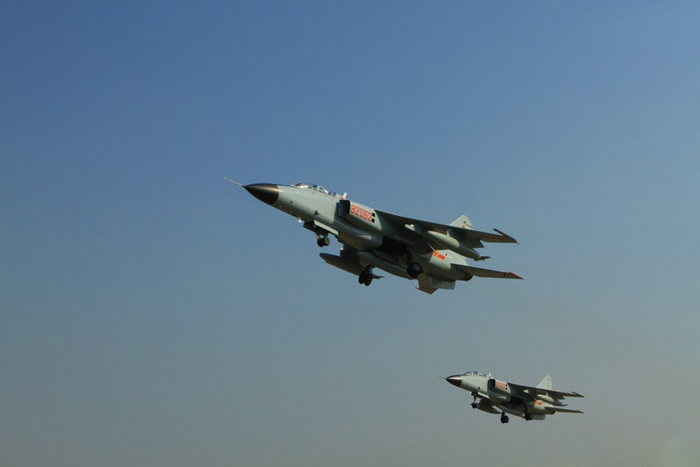 2014年5月20日,“海上联合-2014”演习正式打响,中方海军航空兵某团8架“飞豹”战机将主要扮演蓝军,已全部准备就绪,随时可投入战斗。如外国飞机抵近演习地域侦察,将果断采取包括外逼、驱离…在内的措施,保证演习正常进行。