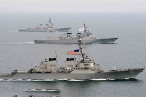 震慑朝鲜!韩美海军在韩国西海进行机动军演