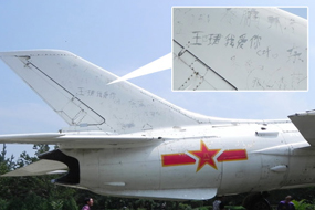 退役功勋强-5强击机被刻图案和文字:某某我爱你